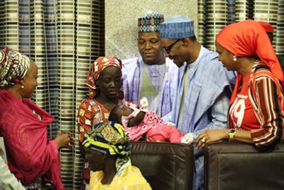 with President Muhammadu Buhari. The girl, her baby, her mother and her